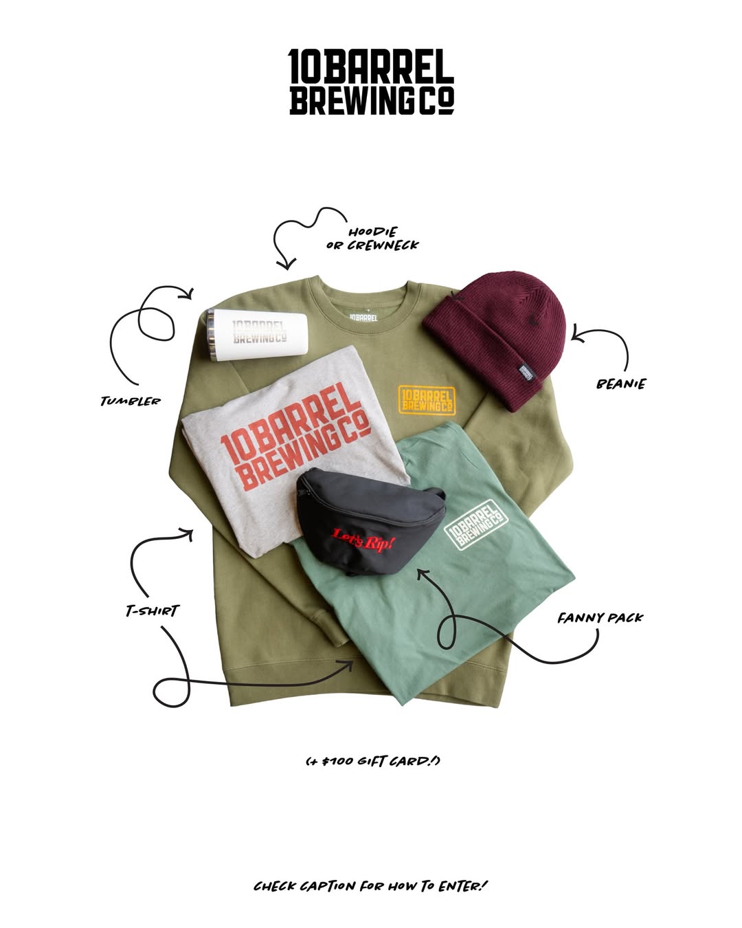 10 Barrel Merch Bundle & 10 Barrel $100 gift card (Valid online and in pubs)